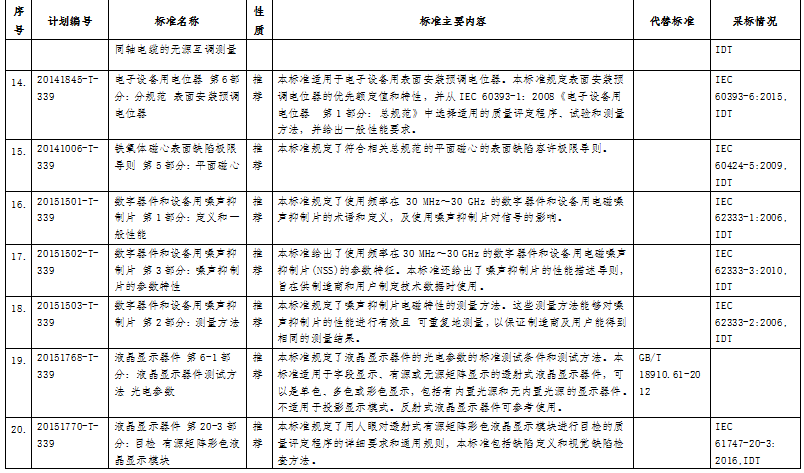 根據(jù)標(biāo)準(zhǔn)制修訂計(jì)劃,相關(guān)標(biāo)準(zhǔn)化技術(shù)組織已完成《半導(dǎo)體集成電路沖壓型引線框架》等14項(xiàng)行業(yè)標(biāo)準(zhǔn)和《光伏器件 第2部分:標(biāo)準(zhǔn)光伏器件的要求》等26項(xiàng)國家標(biāo)準(zhǔn)的制修訂工作。在以上標(biāo)準(zhǔn)批準(zhǔn)發(fā)布之前,為進(jìn)一步聽取社會(huì)各界意見,現(xiàn)予以公示,截止日期2020年10月23日。
