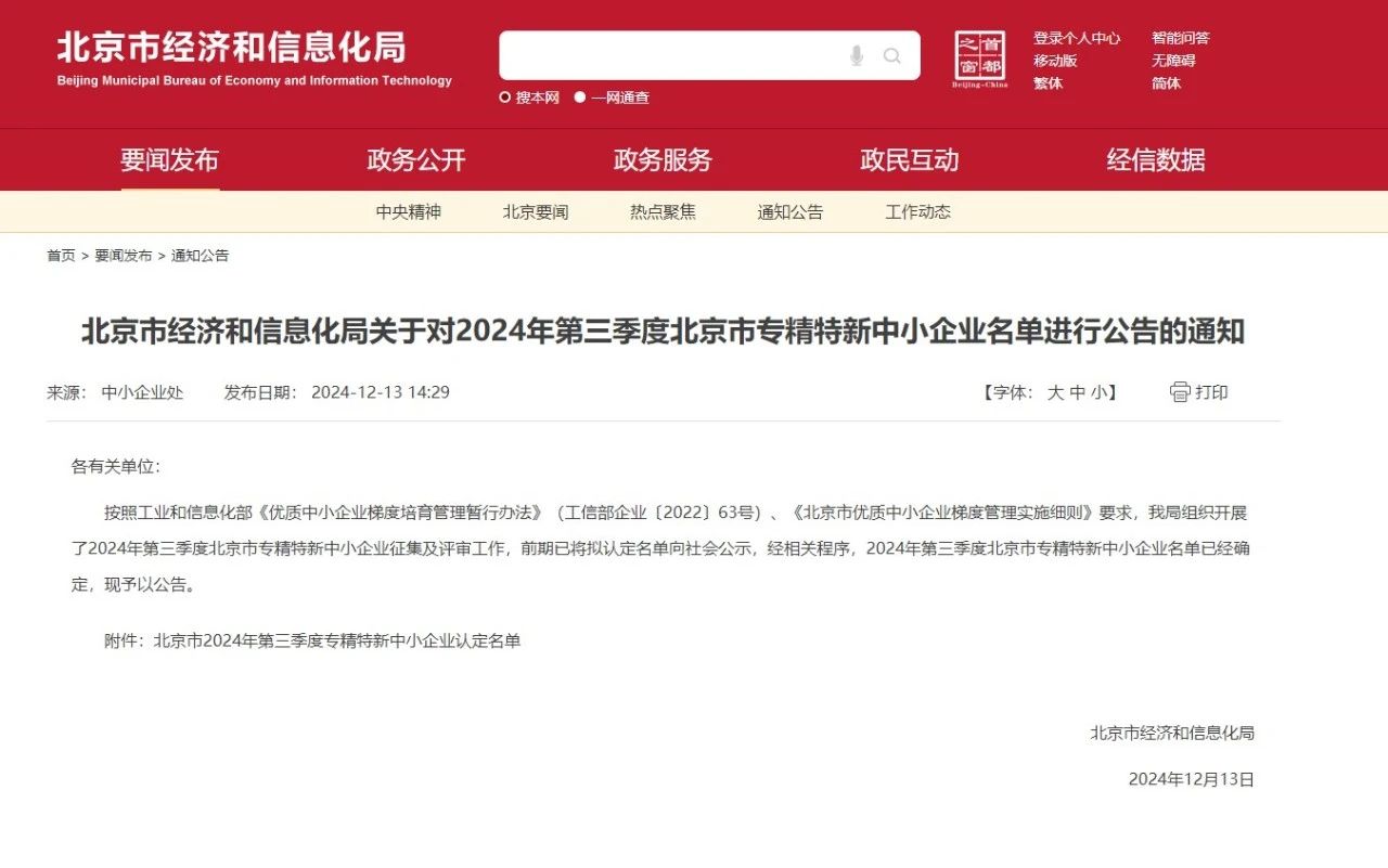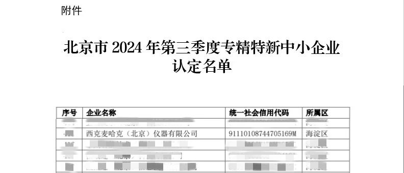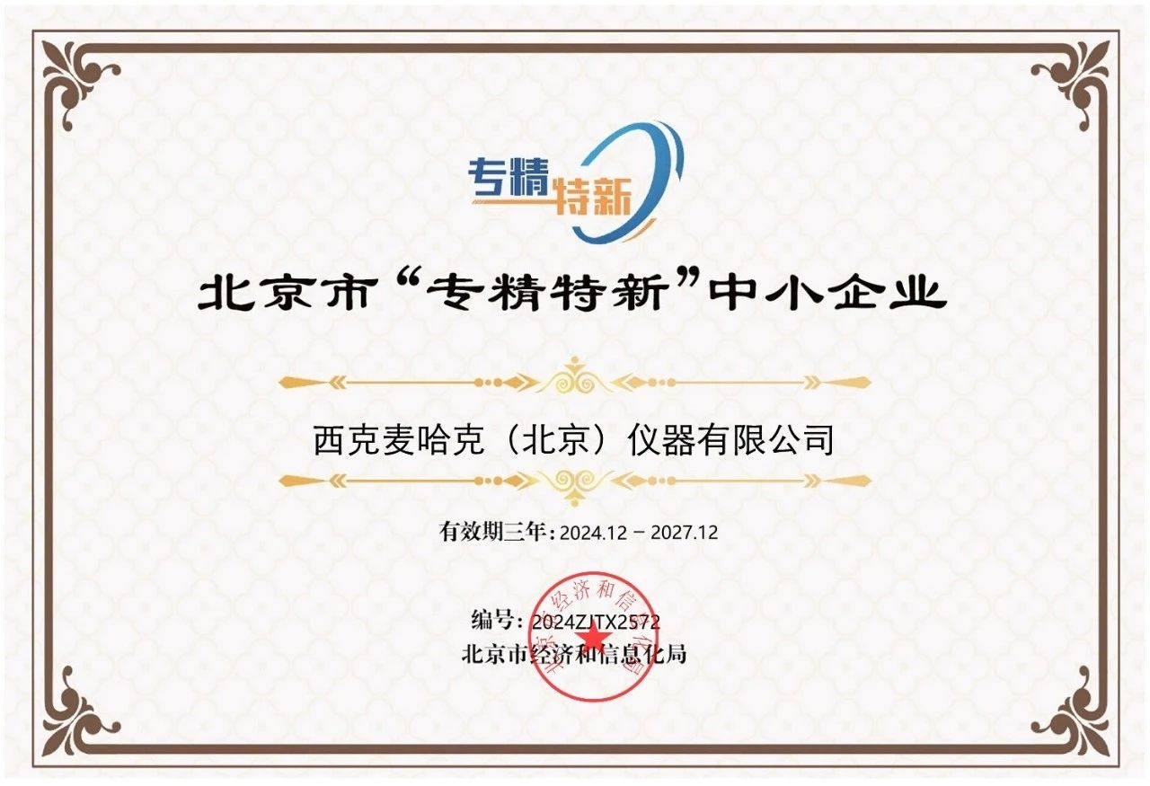 西克麥哈克榮獲北京市2024年度“專精特新”中小企業(yè)稱號