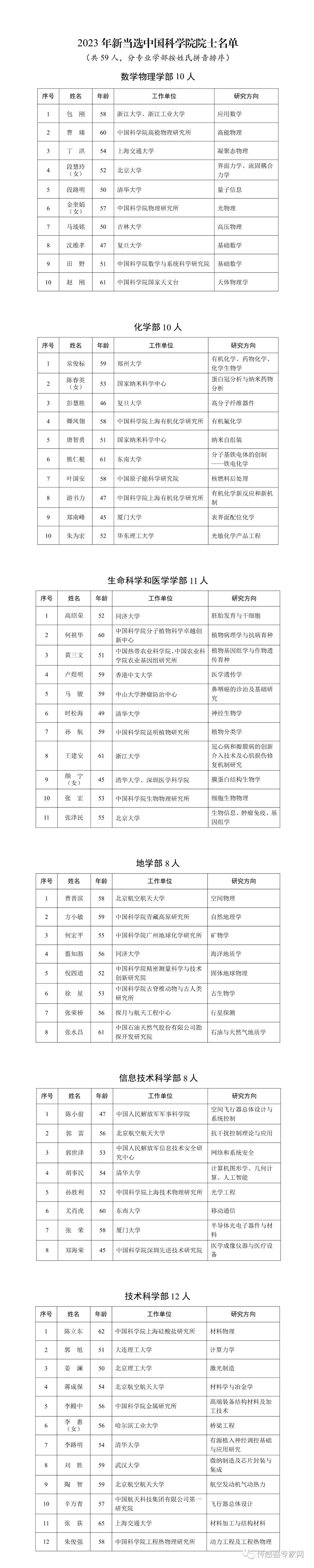 2023年新當選中國科學(xué)院院士名單【全】(可上下滑動查看,可點擊放大查看)