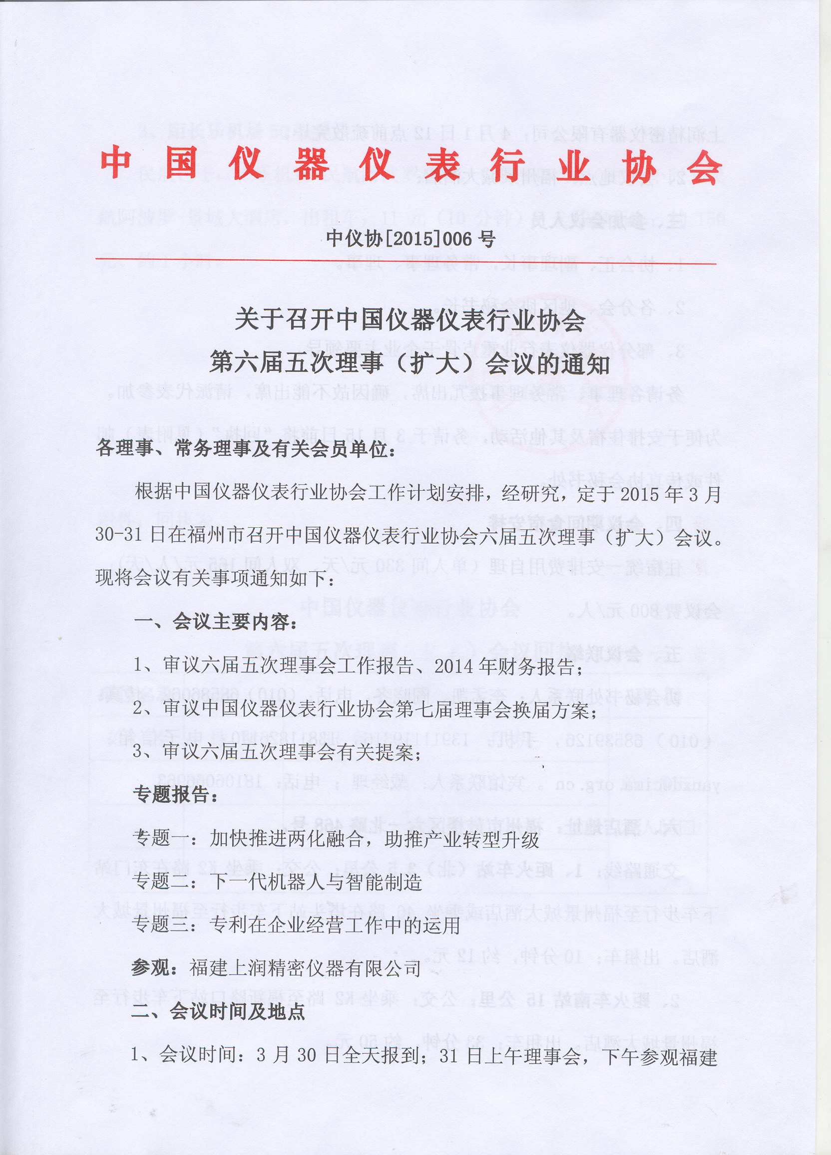 關(guān)于召開(kāi)中國(guó)儀器儀表行業(yè)協(xié)會(huì)第六屆五次理事(擴(kuò)大)