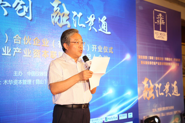 金秋送爽,碩果飄香。8月16日,來自儀器儀表行業(yè)的部分企業(yè)和國內(nèi)金融投資機構(gòu)的近60名主要領(lǐng)導(dǎo)齊聚北京世紀(jì)金源大飯店,參加“國儀投資(深圳)合伙企業(yè)(有限合伙)開業(yè)儀式暨儀器儀表行業(yè)產(chǎn)業(yè)資本聯(lián)盟創(chuàng)始發(fā)起人大會”,共同見證第一支面向儀器儀表及相關(guān)領(lǐng)域的行業(yè)基金——國儀投資(深圳)合伙企業(yè)(有限合伙)的破繭而出,共同孕育儀器儀表行業(yè)產(chǎn)業(yè)資本聯(lián)盟的創(chuàng)立和生成。協(xié)會理事長、重慶川儀自動化股份有限公司董事長吳朋、中國產(chǎn)業(yè)發(fā)展促進會秘書長李小軍、木華資本管理(昆山)合伙企業(yè)(有限合伙)管理合伙人穆振洲、華泰聯(lián)合證券董事長吳曉東等領(lǐng)導(dǎo)出席本次會議。