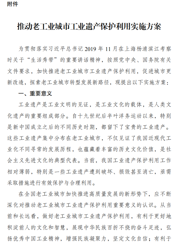 關于印發《推動老工業城市工業遺產保護利用實施方案》的通知