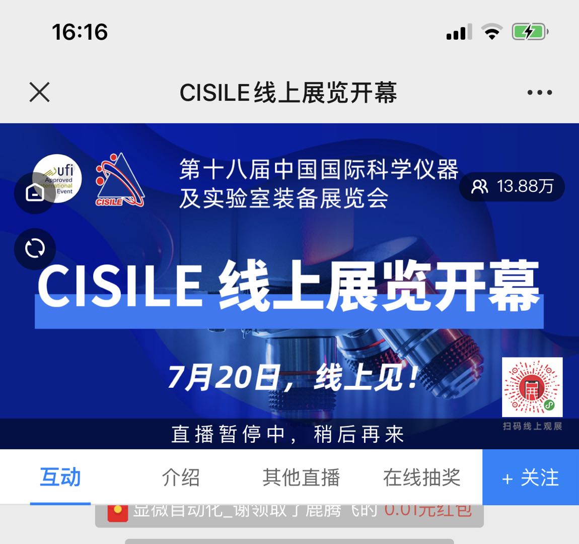 截至2020年7月20日14:00,線上直播活動CISILE官方直播入口觀看人次超過11萬,未計入中國化工儀器網、分析測試百科網的轉播觀看人次。