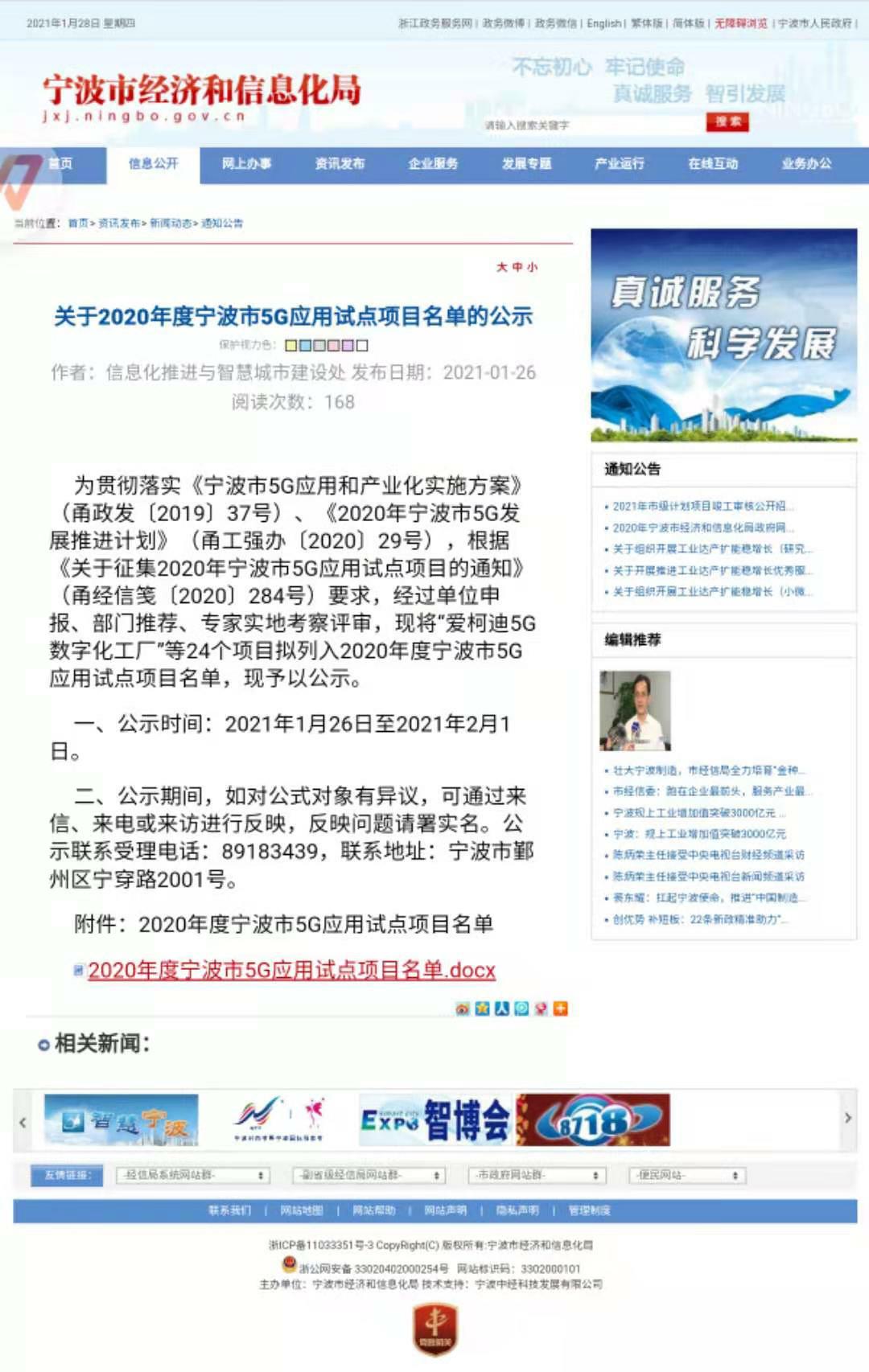 根據(jù)《關(guān)于征集2020年寧波市5G應(yīng)用試點(diǎn)項(xiàng)目的通知》(甬經(jīng)信箋[2020]284號)要求,經(jīng)過單位申報(bào)、部門推薦、專家實(shí)地考察評審,寧波水表(集團(tuán))股份有限公司(以下簡稱:寧水集團(tuán))的“基于5G的供水管網(wǎng)(水質(zhì)、漏損)在線預(yù)警系統(tǒng)”等24個項(xiàng)目被列入2020年度寧波市5G應(yīng)用試點(diǎn)項(xiàng)目名單,并于2021年1月26日至2021年2月1日進(jìn)行了網(wǎng)上公示。該項(xiàng)目主要內(nèi)容有管網(wǎng)綜合感知終端/多參數(shù)水表(智能水表3.0產(chǎn)品)、5G通信終端、管網(wǎng)(水質(zhì)、漏損)在線預(yù)警平臺等關(guān)鍵技術(shù)的研制,以及工程化應(yīng)用等。