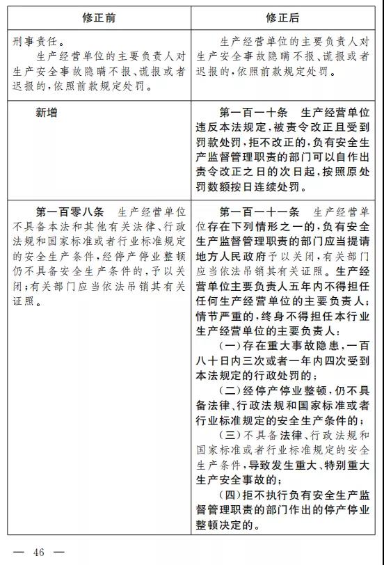 二十九、將第九十九條改為第一百條,修改為:“生產經營單位未采取措施消除事故隱患的,責令立即消除或者限期消除, 處五萬元以下的罰款;生產經營單位拒不執行的,責令停產停業整頓,并自責令停產停業整頓之日的次日起按照原處罰數額按日連續處罰,對其直接負責的主管人員和其他直接責任人員處五萬元以上十萬元以下的罰款。”