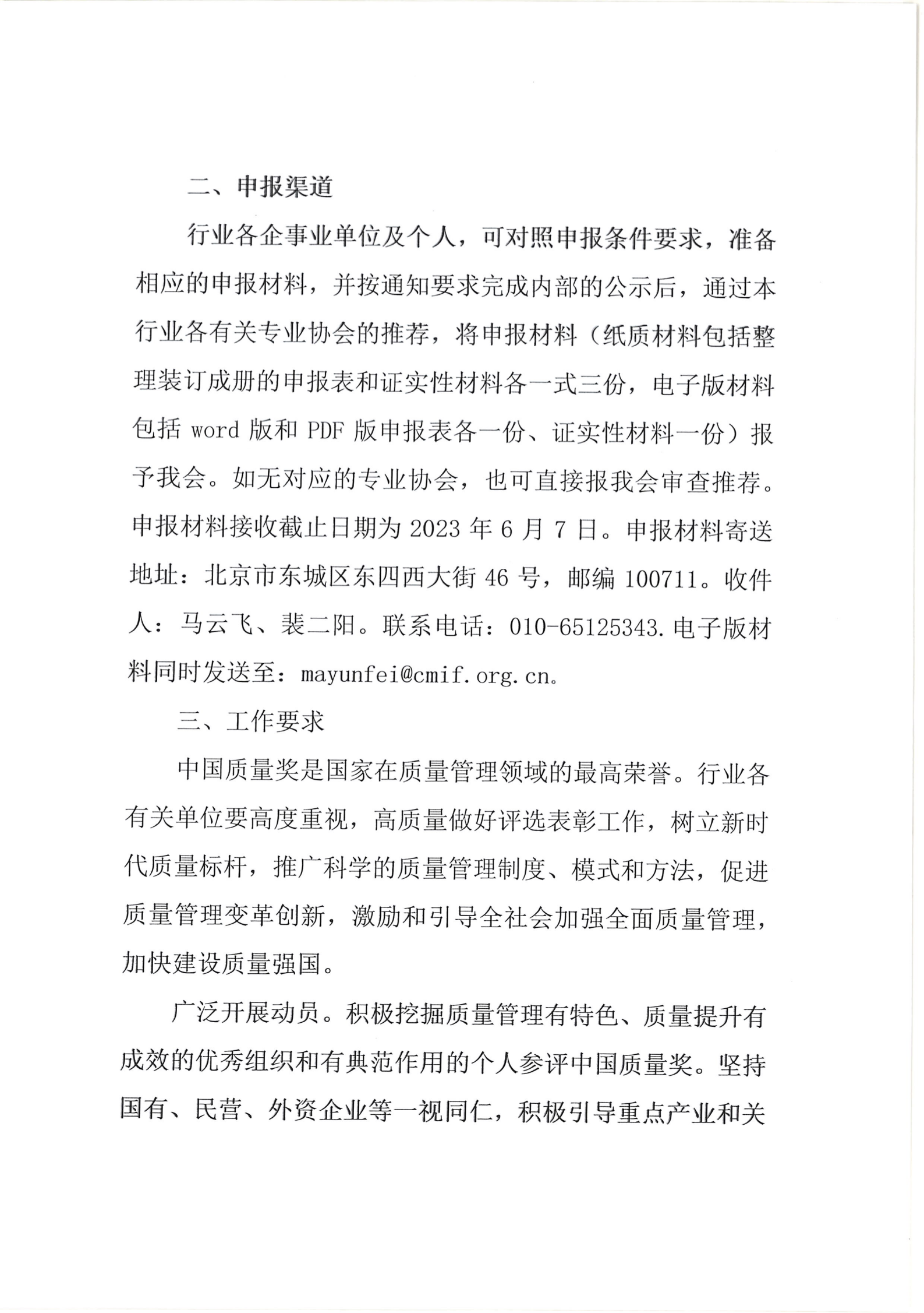 為全面貫徹黨的二十大精神,落實(shí)《質(zhì)量強(qiáng)國建設(shè)綱要》部署,國家市場監(jiān)管總局日前印發(fā)了《關(guān)于開展第五屆中國質(zhì)量獎(jiǎng)評選表彰工作的通知》(市監(jiān)質(zhì)函〔2023〕105號),部署開展第五屆中國質(zhì)量獎(jiǎng)評選表彰工作。根據(jù)通知及相關(guān)文件要求,為做好機(jī)械行業(yè)中國質(zhì)量獎(jiǎng)組織推薦工作,現(xiàn)將有關(guān)事項(xiàng)通知如下: