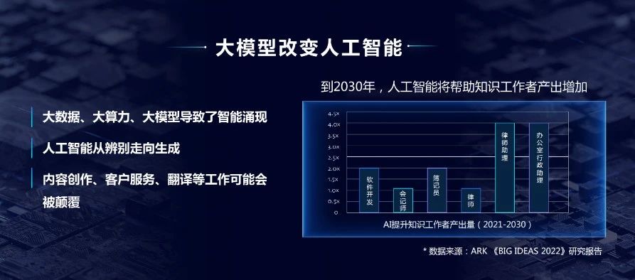 過去,人工智能系統通常只能單一地執行特定任務,例如自動駕駛或下棋。而大模型的出現改變了這一局面,使機器具備了更高的融會貫通能力和通用能力,從而打開了廣泛的應用場景。