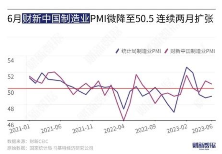 7月3日公布的6月財(cái)新中國制造業(yè)采購經(jīng)理指數(shù)(PMI)錄得50.5,較5月小幅下降0.4個(gè)百分點(diǎn),連續(xù)兩個(gè)月位于擴(kuò)張區(qū)間。