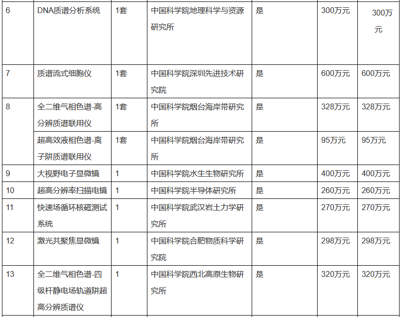 中科院發布2023年1.3億元儀器設備采購項目
