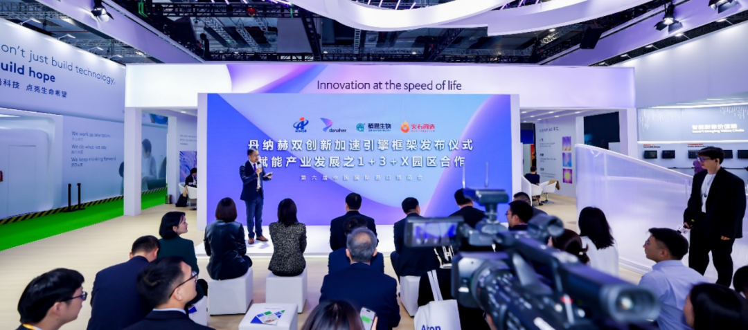 圖片▲第六屆進(jìn)博會(huì)之際,丹納赫就“1+3+X”產(chǎn)業(yè)創(chuàng)新轉(zhuǎn)化加速器分別與商務(wù)部投資促進(jìn)局、植恩生物、火石創(chuàng)造宣布合作