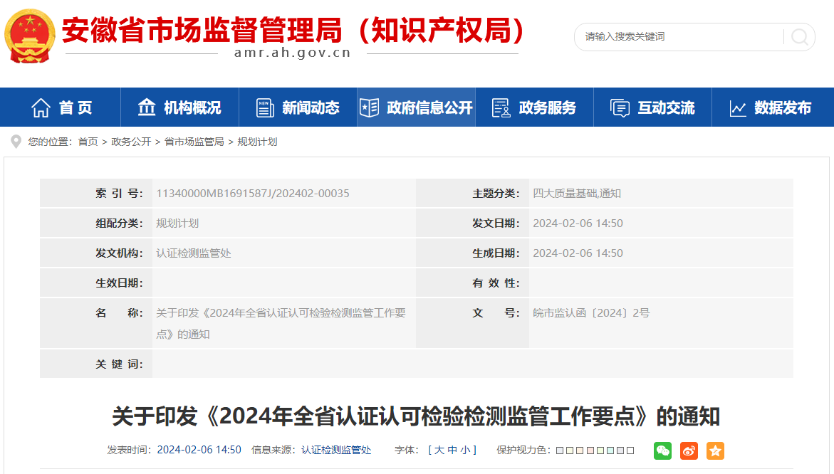 關(guān)于印發(fā)《2024年全省認(rèn)證認(rèn)可檢驗檢測監(jiān)管工作要點》的通知