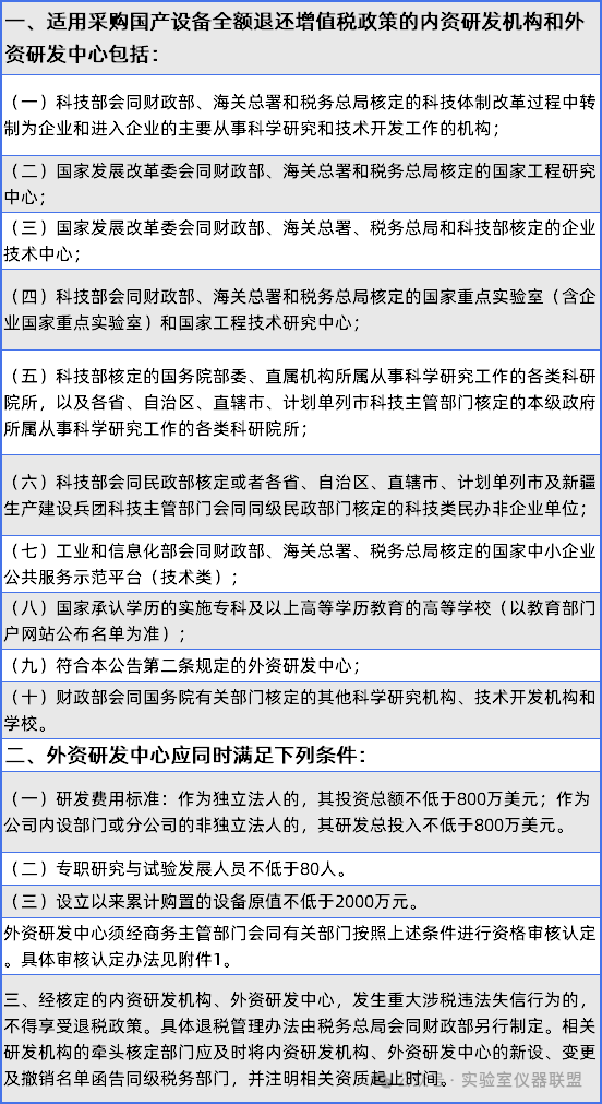 涉及全額退還增值稅的相關(guān)設(shè)備清單,也在財(cái)政部、商務(wù)部、稅務(wù)總局三部門去年8月印發(fā)的《關(guān)于研發(fā)機(jī)構(gòu)采購(gòu)設(shè)備增值稅政策的公告》中做了詳細(xì)公布。