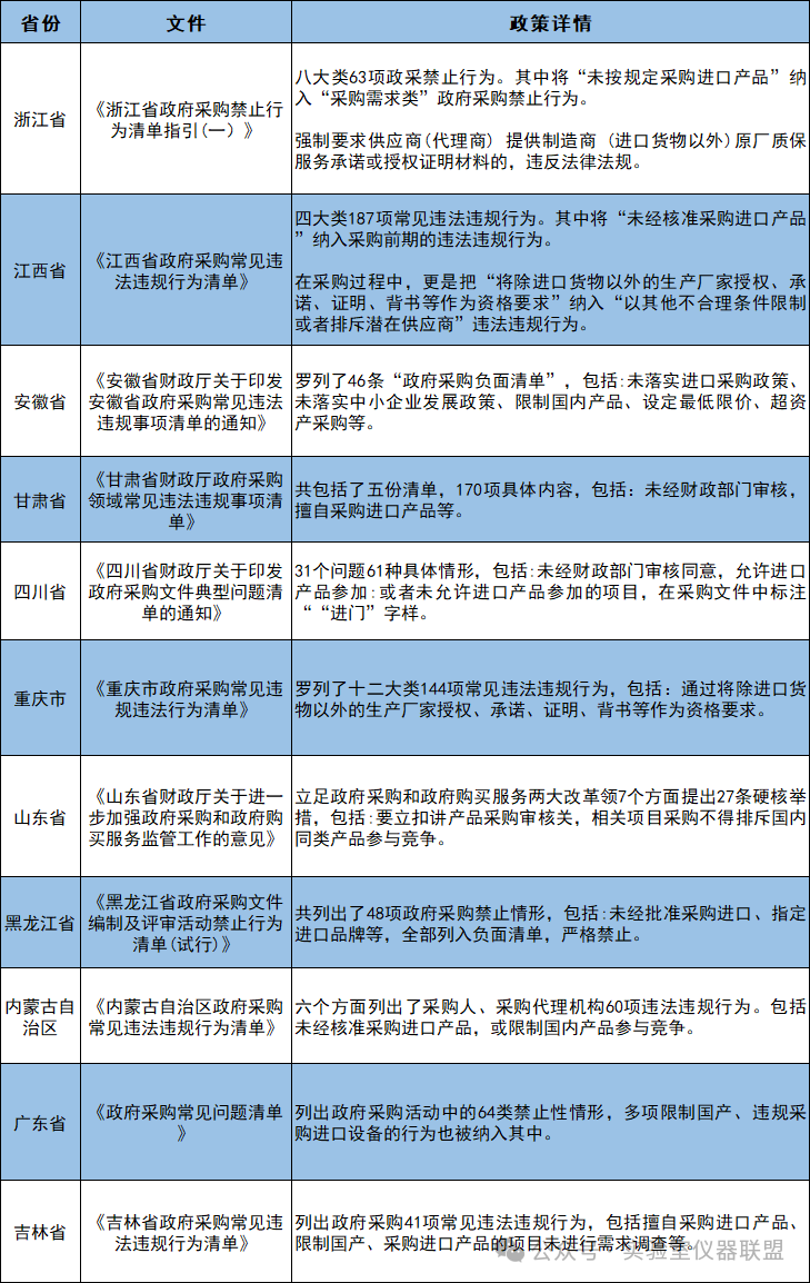 包括浙江、廣東、黑龍江、吉林等多省接連發(fā)布通知,著重強(qiáng)調(diào)應(yīng)當(dāng)采購(gòu)本國(guó)產(chǎn)品,把政府采購(gòu)中限制國(guó)產(chǎn)設(shè)備、違規(guī)采購(gòu)進(jìn)口等行為,納入負(fù)面清單嚴(yán)格禁止。