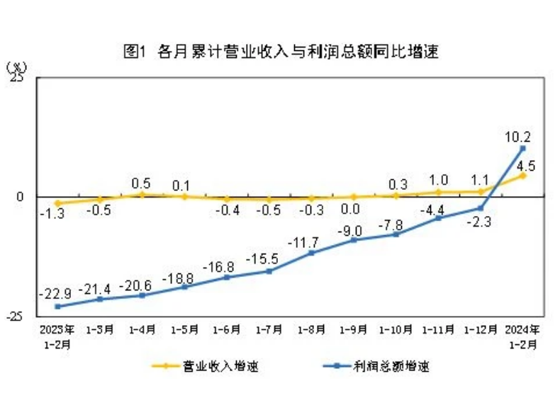 2月份全國規模以上工業企業利潤增長10.2%