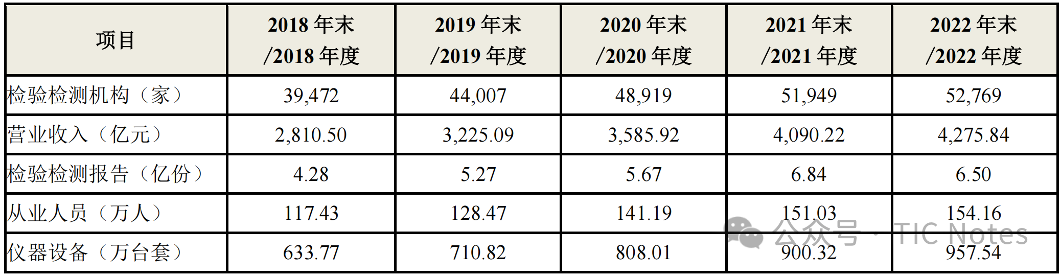 我國檢驗(yàn)檢測服務(wù)業(yè)現(xiàn)已覆蓋建筑工程、環(huán)保、衛(wèi)生、農(nóng)業(yè)、質(zhì)檢、食品、藥品、機(jī)械、電子、輕工、紡織、航空等國民經(jīng)濟(jì)各個領(lǐng)域,根據(jù)國家市場監(jiān)督管理總局于 2023 年 6 月發(fā)布的《2022 年度全國檢驗(yàn)檢測服務(wù)業(yè)統(tǒng)計(jì)簡報》(以下簡稱“統(tǒng)計(jì)簡報”),我國檢驗(yàn)檢測行業(yè)規(guī)模繼續(xù)擴(kuò)大;2022 年末,獲得資質(zhì)認(rèn)定的各類檢驗(yàn)檢測機(jī)構(gòu) 52,769 家,較 2021 年末增長 1.58%;2022 年度實(shí)現(xiàn)營業(yè)收入 4,275.84 億元,較 2021 年度增長 4.54%;2022 年度共向社會出具檢驗(yàn)檢測報告 6.50 億份,較 2021 年度下降 4.97% 。