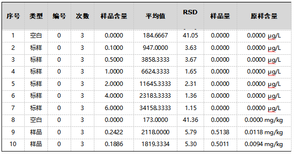 稱取0.5g試樣,精確至0.0001g,置于50mL燒杯中,加入適量水溶解,完全轉(zhuǎn)移至50mL容量瓶中,加入5mL硫脲-抗壞血酸混合溶液,加入5mL鹽酸溶液,用水稀釋至刻度,搖勻,室溫放置30min,同時(shí)制備空白溶液,待上機(jī)測試。