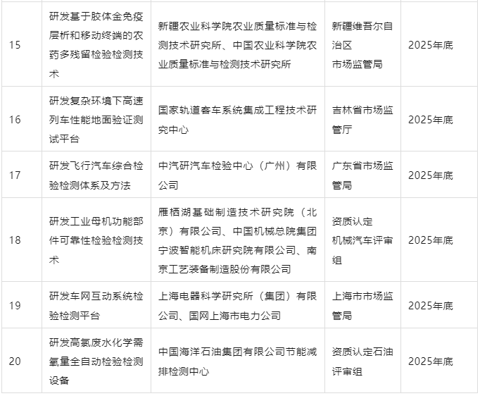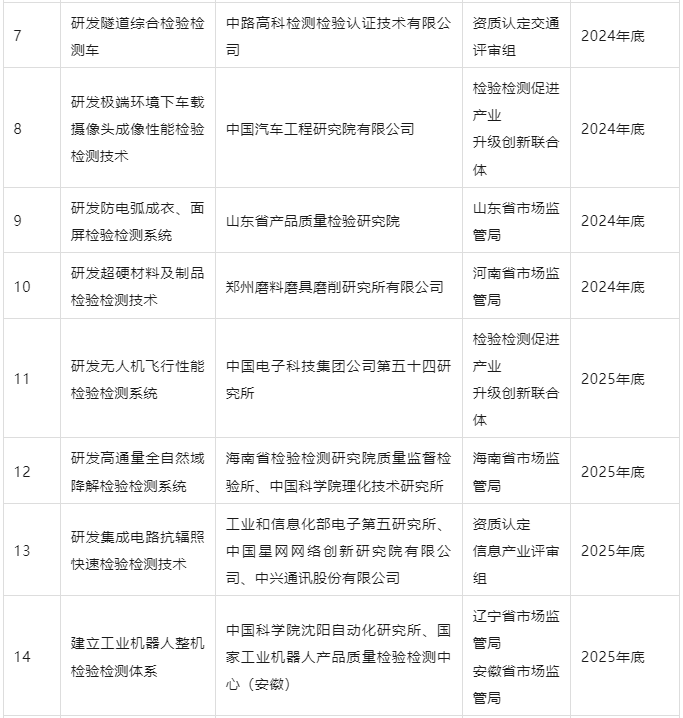 檢驗檢測促進產業(yè)優(yōu)化升級行動重點項目