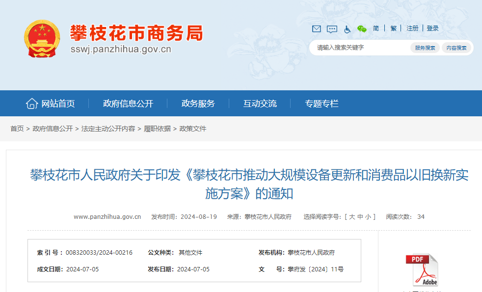 攀枝花市推動(dòng)大規(guī)模設(shè)備更新和消費(fèi)品以舊換新實(shí)施方案