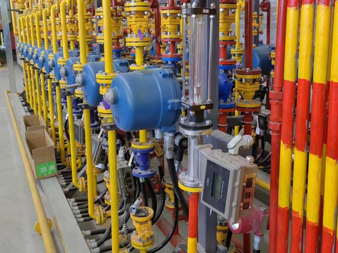 氮?dú)鉁y(cè)量采用1.5%精度的LWQ系列氣體渦輪流量計(jì)控制流量,因現(xiàn)場(chǎng)垂直安裝,選無注油表體。氫氣測(cè)量采用管道式SFMT系列熱式氣體質(zhì)量流量計(jì)。