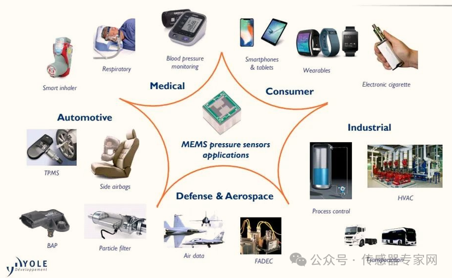 ▲MEMS壓力傳感器應(yīng)用,來源:Yole