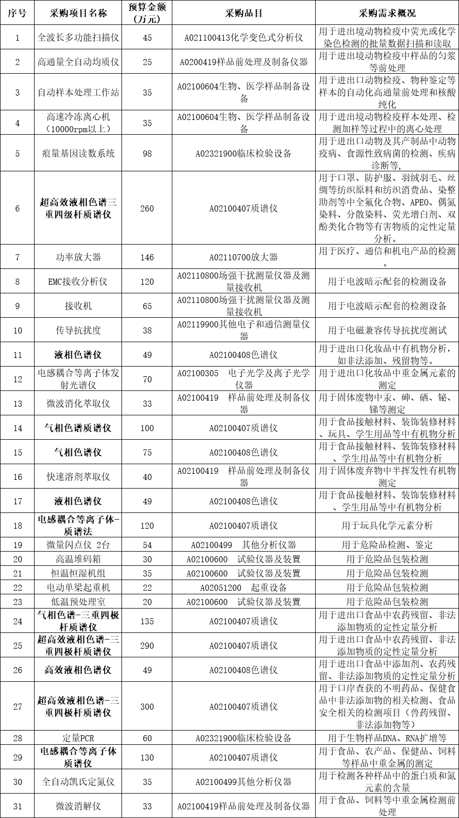 杭州海關技術中心2024年9至12月政府采購意向