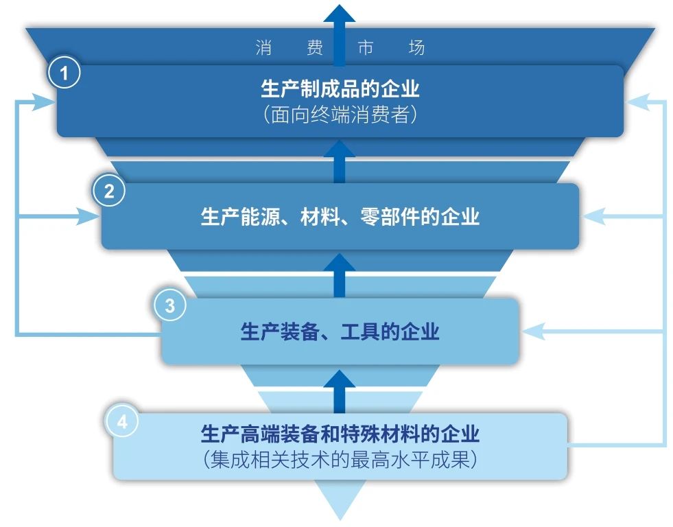 對于制造業而言,產業升級的要求就是第1、2類企業的工藝改進、效率提升、質量提高,直至生產過程和產品的代際跨越。這也是公眾、金融界和政府關注點最集中的地方。在分工高度發展和產業鏈充分拉長的今天,第1、2類企業提出的是對生產裝備的精度、效率、可靠性、穩定性和壽命等工藝與技術指標要求,這些要求如何與構建成生產裝備的各門學科、技術的最新成果對應?如何優化組合以最低的成本和代價來實現?這些都是第1、2類企業自身無法完成的任務。