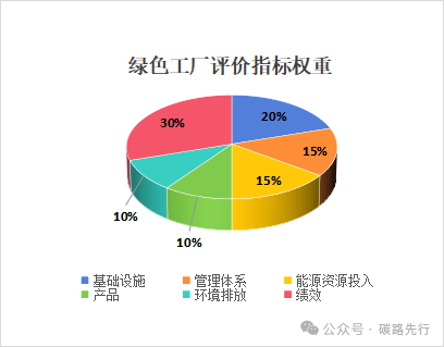 如果基本要求全部滿足,那么就從基礎(chǔ)設(shè)施、管理體系、能源資源投入、產(chǎn)品、環(huán)境排放和績(jī)效6個(gè)一級(jí)指標(biāo)對(duì)企業(yè)進(jìn)行打分,6個(gè)一級(jí)指標(biāo)的權(quán)重如下: