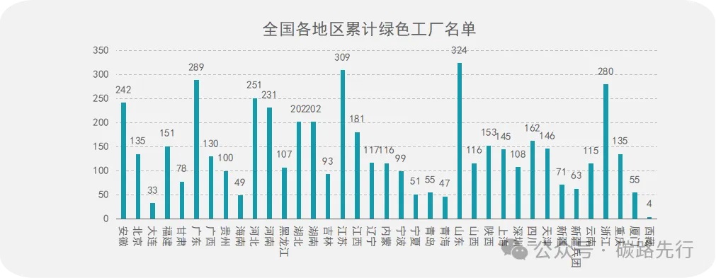 根據(jù)統(tǒng)計(jì),全國綠色工廠累計(jì)申報(bào)最多的地區(qū)分別為山東省、江蘇省、廣東省和浙江省。