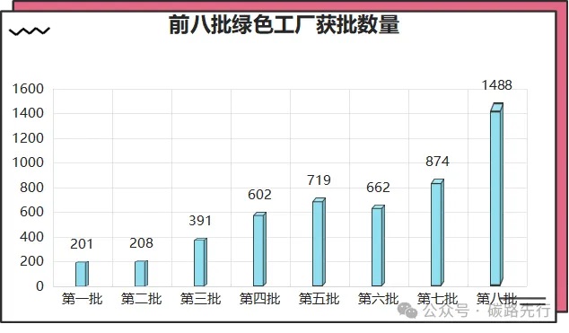 工信部自2017年以來開始組織全國性的綠色工廠評(píng)選活動(dòng),到2023年為止,累計(jì)公布了八批次綠色工廠名單,獲批數(shù)量達(dá)到5145家,其中,2022年動(dòng)態(tài)調(diào)整移除綠色制造名單41家綠色工廠,2023年動(dòng)態(tài)調(diào)整移除綠色制造名單9家綠色工廠,國家層面累計(jì)培育綠色工廠5095家。