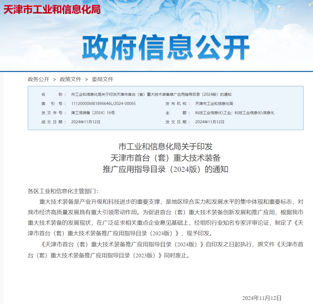 為促進(jìn)首臺(tái)(套)重大技術(shù)裝備創(chuàng)新發(fā)展和推廣應(yīng)用,根據(jù)天津市重大技術(shù)裝備的發(fā)展現(xiàn)狀,在廣泛征求相關(guān)重點(diǎn)企業(yè)意見(jiàn)基礎(chǔ)上,經(jīng)組織行業(yè)知名專家評(píng)審論證,天津市工業(yè)和信息化局制定了《天津市首臺(tái)(套)重大技術(shù)裝備推廣應(yīng)用指導(dǎo)目錄(2024版)》,東西分析儀器(天津)有限公司飛行時(shí)間質(zhì)譜儀成功入選此目錄。