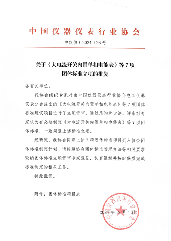 近日,根據(jù)《中國(guó)儀器儀表行業(yè)協(xié)會(huì)團(tuán)體標(biāo)準(zhǔn)管理辦法》的規(guī)定,經(jīng)審查,對(duì)由中國(guó)儀器儀表行業(yè)協(xié)會(huì)電工儀器儀表分會(huì)提出的《大電流開(kāi)關(guān)內(nèi)置單相電能表》等7項(xiàng)團(tuán)體標(biāo)準(zhǔn)進(jìn)行立項(xiàng)(標(biāo)準(zhǔn)編號(hào)和名稱見(jiàn)下表),特此公告。
