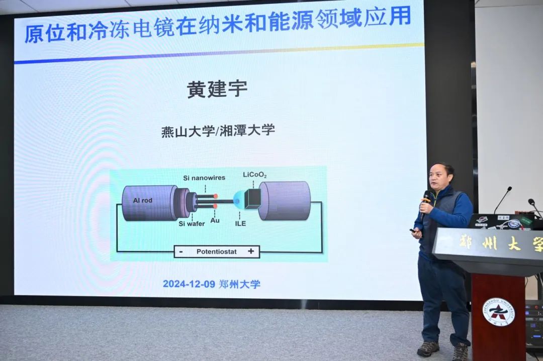燕山大學黃建宇教授作了題為“原位和冷凍電鏡在納米和能源領域應用”的報告;