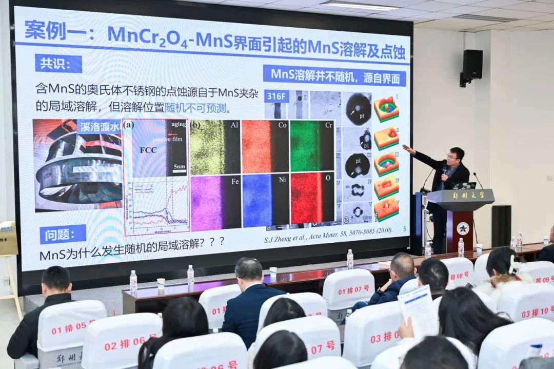 河北工業大學鄭士建教授分享了“近使役條件下工程合金微結構與性能”的報告;