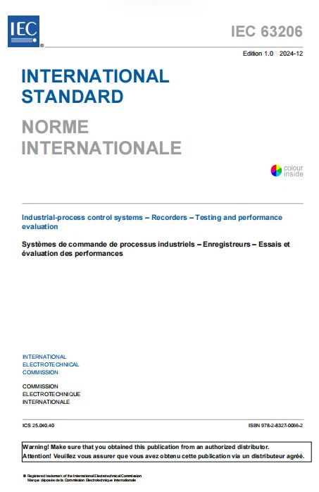 由自儀院主導制定的國際電工委員會(IEC)國際標準IEC 63206:2024《工業過程控制系統 記錄儀 試驗和性能評定》于2024年12月正式發布。