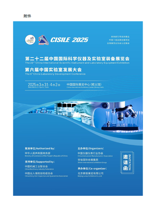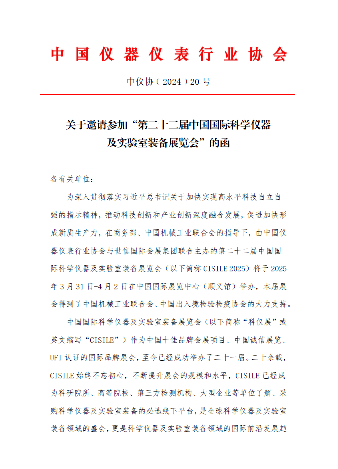 關(guān)于邀請參加“第二十二屆中國國際科學(xué)儀器及實驗室裝