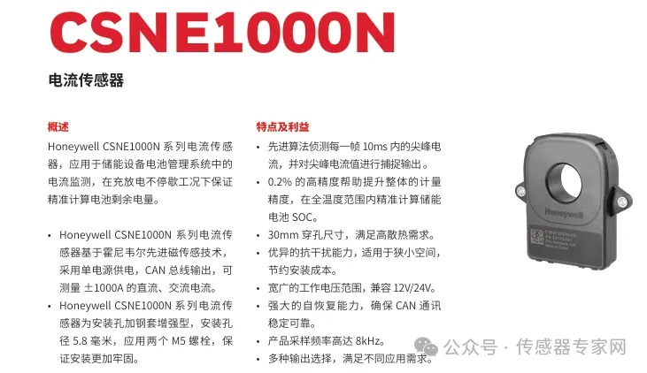 霍尼韋爾推出的CSNE 1000系列電流傳感器即在中國南京研發(fā)完成和生產(chǎn),CSNE 1000系列電流傳感器是一款針對儲能等應(yīng)用場景研發(fā)的高性能傳感器產(chǎn)品,已在全球多家儲能巨頭公司產(chǎn)品中應(yīng)用。
