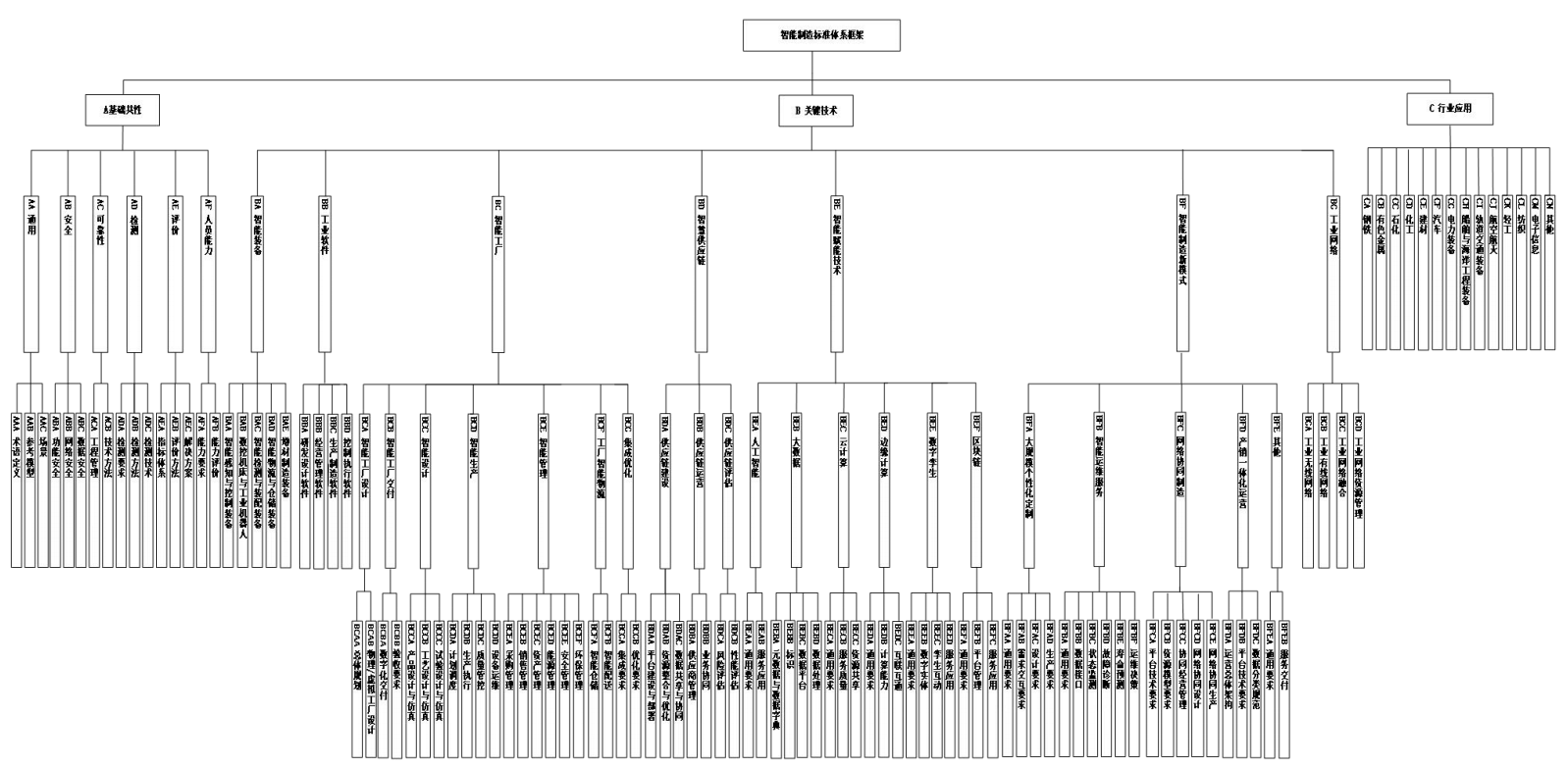 具體而言,A基礎(chǔ)共性標(biāo)準(zhǔn)包括通用、安全、可靠性、檢測、評價(jià)、人員能力等6大類,位于智能制造標(biāo)準(zhǔn)體系結(jié)構(gòu)圖的最底層,主要用于統(tǒng)一智能制造相關(guān)概念,解決智能制造基礎(chǔ)共性關(guān)鍵問題,是B關(guān)鍵技術(shù)標(biāo)準(zhǔn)和C行業(yè)應(yīng)用標(biāo)準(zhǔn)的支撐。B關(guān)鍵技術(shù)標(biāo)準(zhǔn)是智能制造系統(tǒng)架構(gòu)智能特征維度在生命周期維度和系統(tǒng)層級維度所組成的制造平面的投影,主要解決企業(yè)智能制造推進(jìn)過程中需要解決的關(guān)鍵技術(shù)問題,其中BA智能裝備標(biāo)準(zhǔn)主要聚焦智能特征維度的資源要素,BB工業(yè)軟件標(biāo)準(zhǔn)主要聚焦智能特征維度的系統(tǒng)集成,BC智能工廠標(biāo)準(zhǔn)主要聚焦智能特征維度的資源要素和系統(tǒng)集成,BD智慧供應(yīng)鏈標(biāo)準(zhǔn)對應(yīng)智能特征維度互聯(lián)互通、融合共享和系統(tǒng)集成,BE智能賦能技術(shù)標(biāo)準(zhǔn)對應(yīng)智能特征維度的資源要素、互聯(lián)互通、融合共享、系統(tǒng)集成和新興業(yè)態(tài),BF智能制造新模式標(biāo)準(zhǔn)對應(yīng)智能特征維度的新興業(yè)態(tài),BG工業(yè)網(wǎng)絡(luò)標(biāo)準(zhǔn)對應(yīng)智能特征維度的互聯(lián)互通和融合共享。C行業(yè)應(yīng)用標(biāo)準(zhǔn)位于智能制造標(biāo)準(zhǔn)體系結(jié)構(gòu)圖的最頂層,面向行業(yè)具體需求,對A基礎(chǔ)共性標(biāo)準(zhǔn)和B關(guān)鍵技術(shù)標(biāo)準(zhǔn)進(jìn)行細(xì)化和落地,指導(dǎo)各行業(yè)推進(jìn)智能制造。