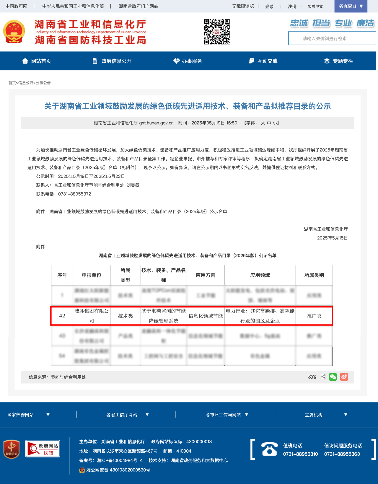 威勝集團榮登湖南省工業領域鼓勵發展的綠色低碳先進適