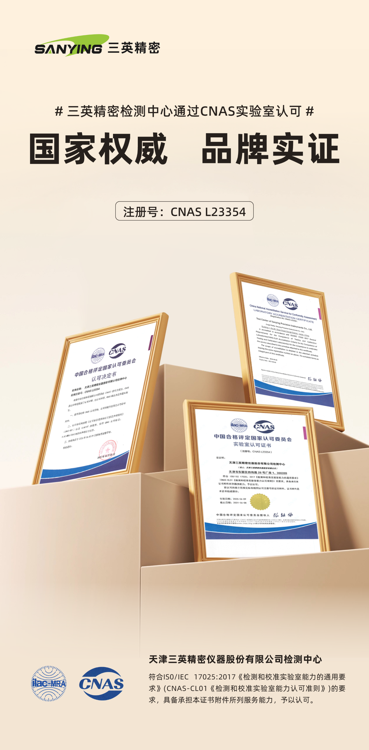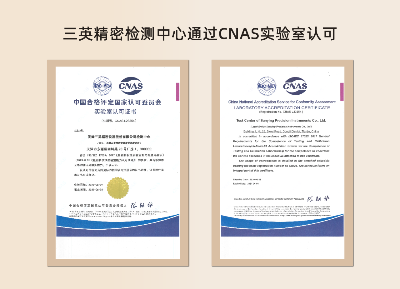 近日,三英精密檢測技術(shù)再獲國家級認(rèn)可!經(jīng)過嚴(yán)格評審,天津三英精密儀器股份有限公司檢測中心(以下簡稱三英精密檢測中心)成功通過中國合格評定國家認(rèn)可委員會(CNAS)認(rèn)證,正式獲得CNAS實驗室認(rèn)可證書(注冊號:CNAS L23354)。這標(biāo)志著三英精密的檢測能力、管理水平和技術(shù)實力達(dá)到國際標(biāo)準(zhǔn),在無損檢測領(lǐng)域再添一枚“國字號”金字招牌!
