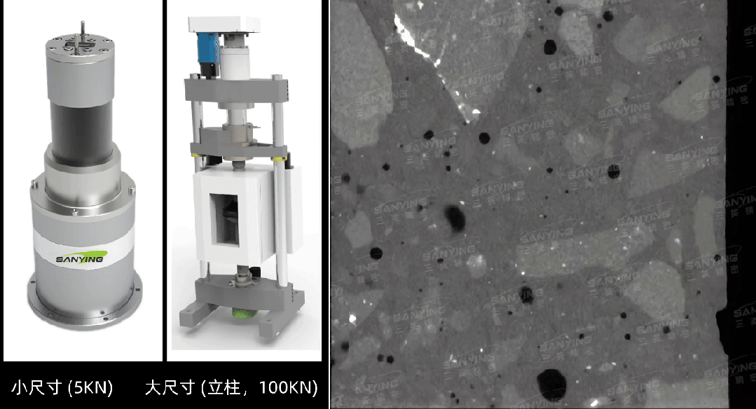 右圖:壓力加載下混凝土內(nèi)部結(jié)構(gòu)的實時變化(動態(tài)圖)