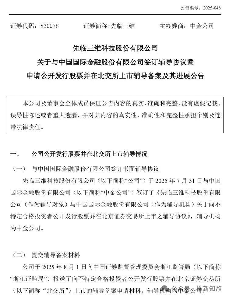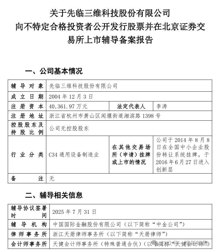 2025年7月31日,先臨三維與中國國際金融股份有限公司(“中金公司”)簽訂輔導(dǎo)協(xié)議,正式啟動(dòng)IPO進(jìn)程。