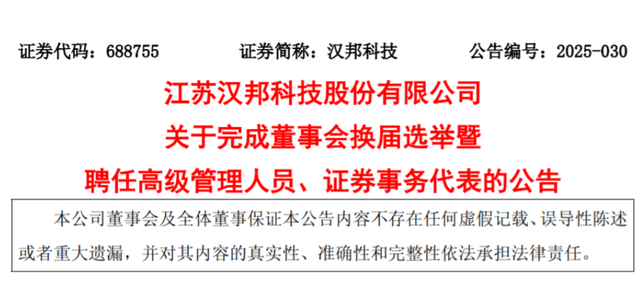 在高級管理人員團(tuán)隊組建上,漢邦科技進(jìn)行了精心布局。公司同意聘任李勝迎先生、湯業(yè)峰先生、金新亮先生、劉根水先生、嚴(yán)忠先生為公司副總經(jīng)理(高級副總裁)。