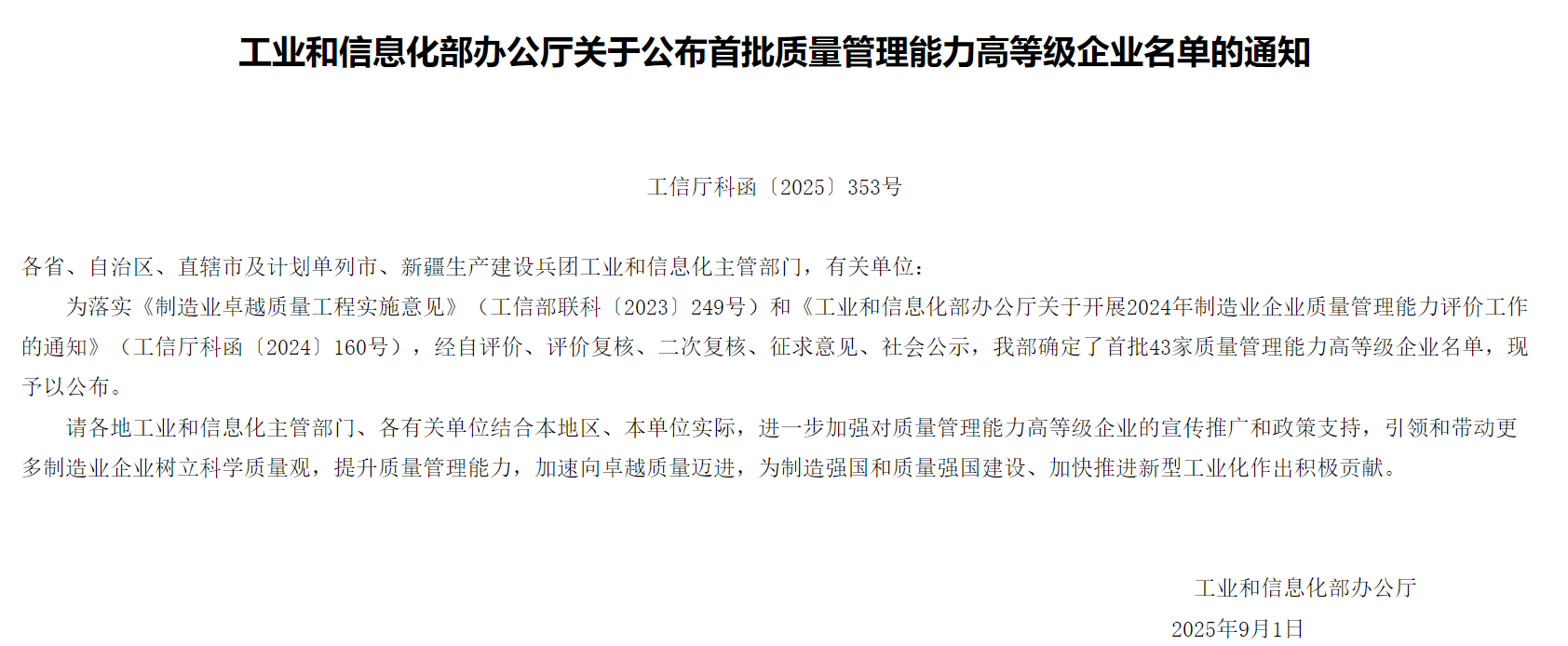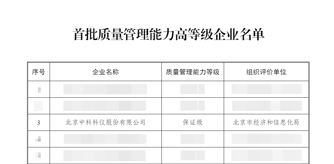近日,工業(yè)和信息化部公布了首批43家質(zhì)量管理能力高等級(jí)企業(yè)名單,北京中科科儀股份有限公司成功入選。