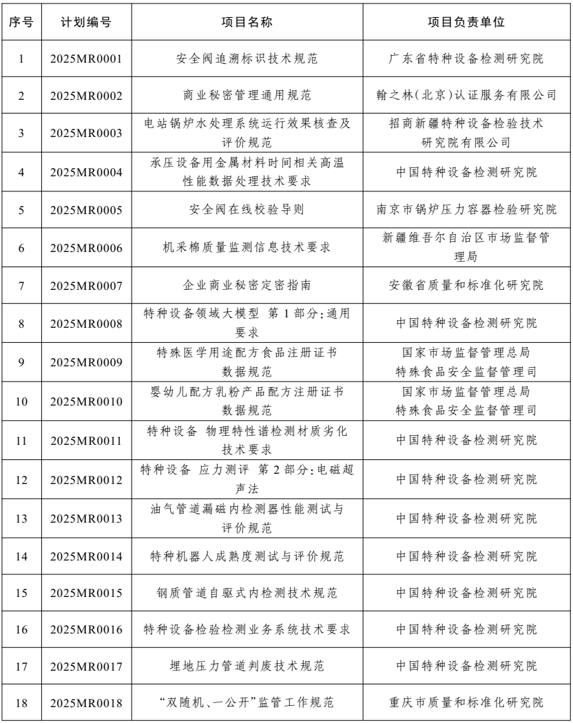 按照《市場監管行業標準管理辦法》和《市場監管行業標準制定管理實施細則》要求,市場監管總局確定了2025年度市場監管行業標準制修訂項目計劃(以下簡稱項目計劃),現印發給你們,請認真組織落實。具體要求如下:
