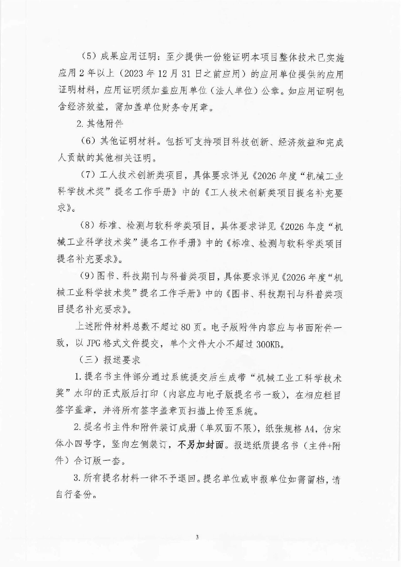 關于開展2026年度“機械工業科學技術獎”提名工作