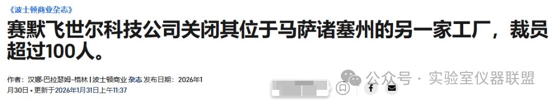 這并非賽默飛世爾科技近期的唯一運(yùn)營(yíng)調(diào)整。2026年1月初,公司已宣布計(jì)劃關(guān)閉北卡羅來(lái)納州阿什維爾的一家制造工廠,裁員421人。更早之前,公司在馬薩諸塞州已有數(shù)次裁員:2025年2月,其在劍橋和普萊恩維爾的工廠裁員約300人;2024年11月,公司關(guān)閉了萊克星頓的辦公點(diǎn),并縮減在普萊恩維爾和劍橋的員工規(guī)模,累計(jì)影響160個(gè)崗位。